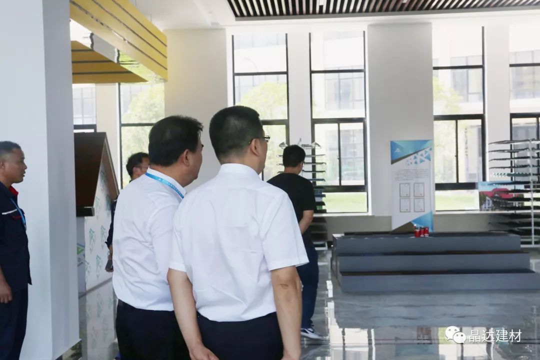 在晶達(dá)的產(chǎn)品展示廳內(nèi),高總經(jīng)理首先向各位領(lǐng)導(dǎo)匯報(bào)了廠區(qū)建設(shè)與運(yùn)行的工作情況,接著詳細(xì)介紹了我司的玻纖胎瀝青瓦、彩石金屬瓦、石油瀝青油氈、高分子防水卷材等系列主打產(chǎn)品。王市長(zhǎng)對(duì)此表現(xiàn)出濃厚興趣,并親切慰問(wèn)了工作人員。