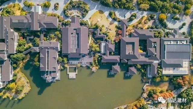 從天空俯瞰,成行灰瓦依水而建,明暗交錯亂中有序,與對岸別墅群遙相輝映,共同構(gòu)建出一幅氣勢恢宏的現(xiàn)代江南民居圖。